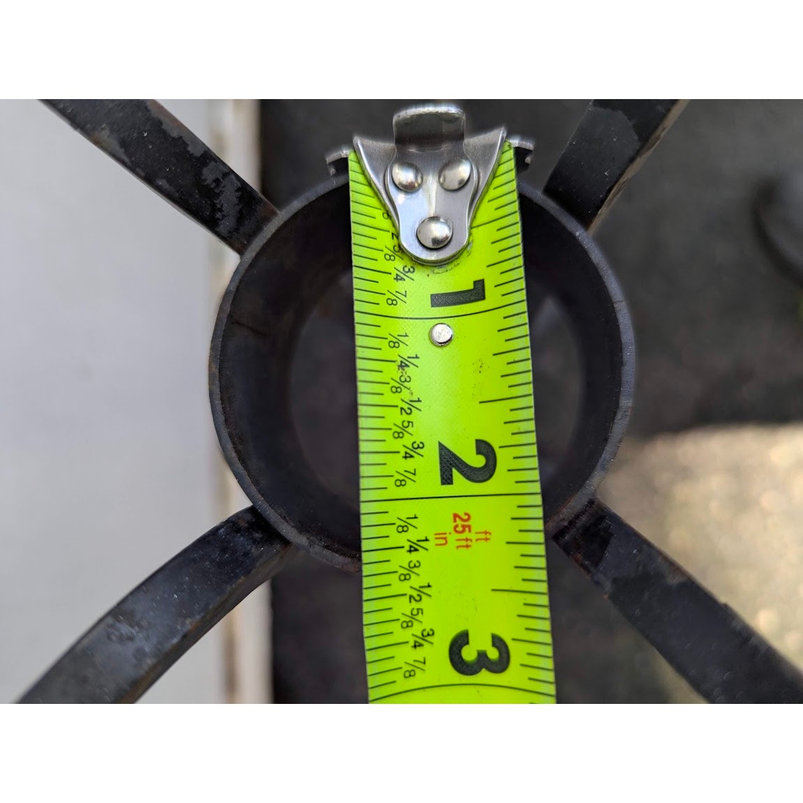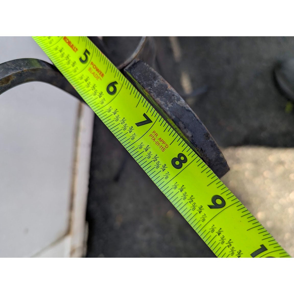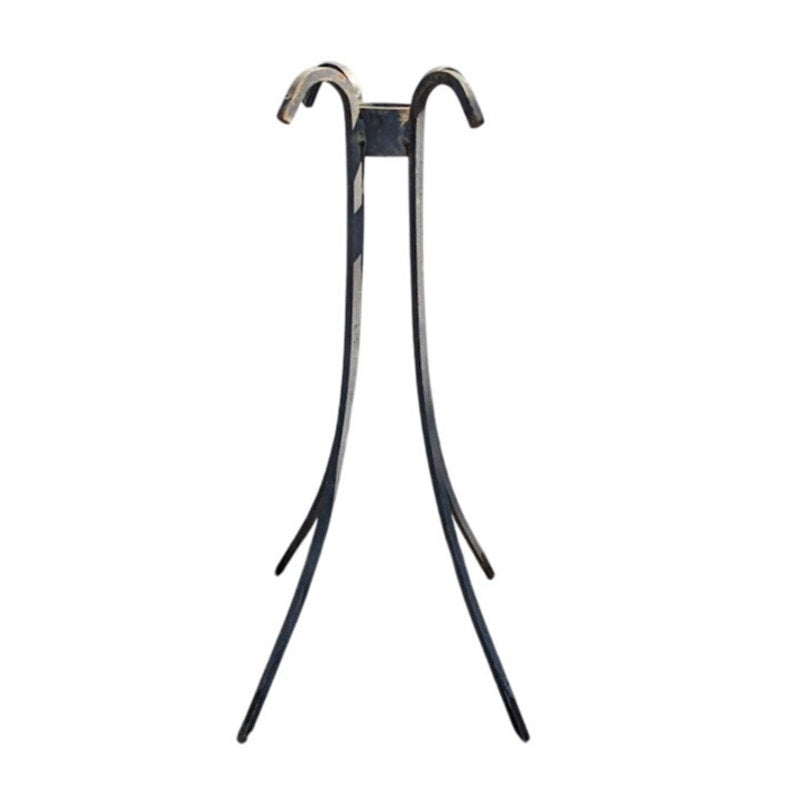 Add a touch of Gothic or Traditional charm to your yard with this sturdy 24" wrought iron gazing ball stand. Perfect for securely displaying your favorite garden globes or planters both indoors and outdoors. It is in good pre-owned condition with some weathering and surface rust typical of outdoor use, adding to its rustic appeal.