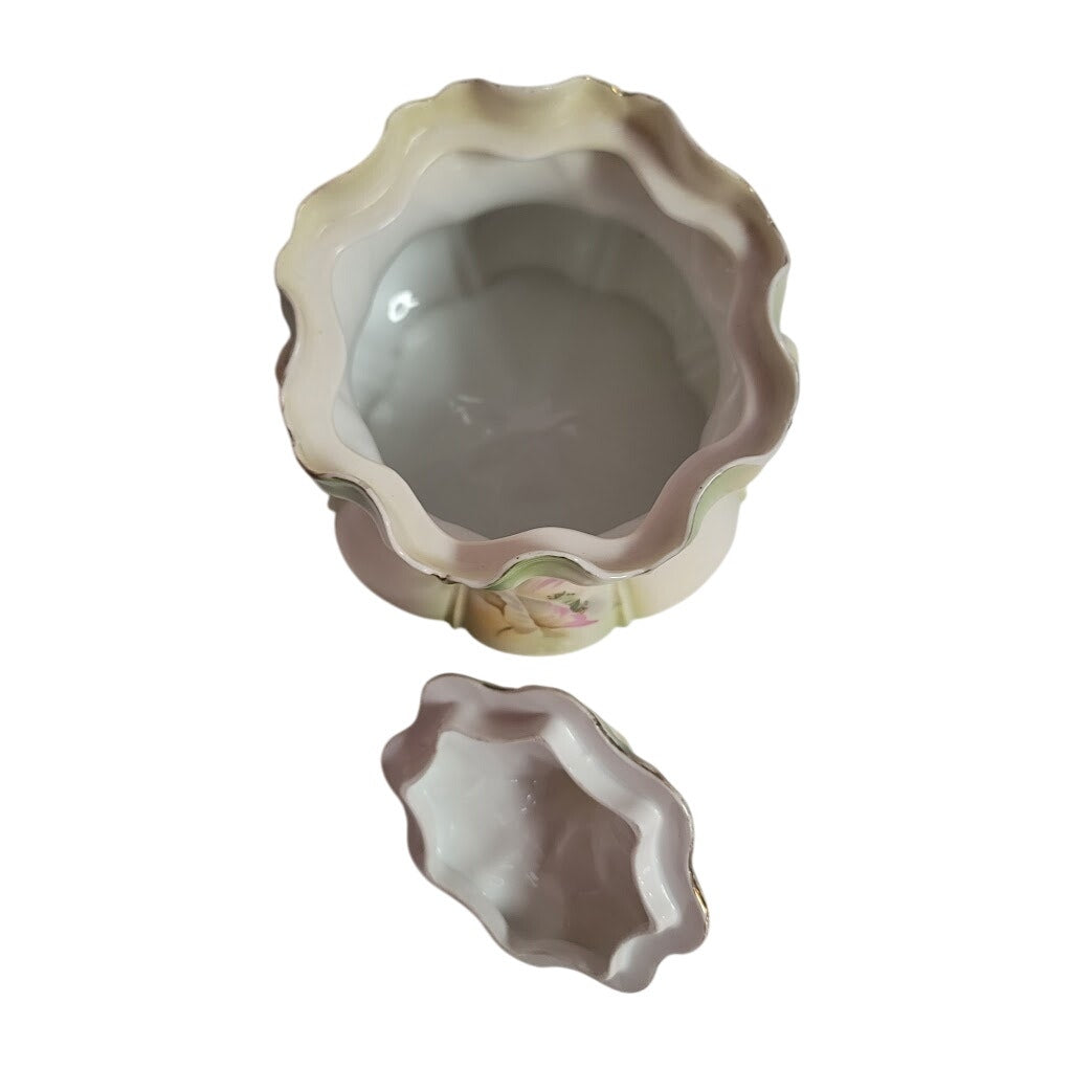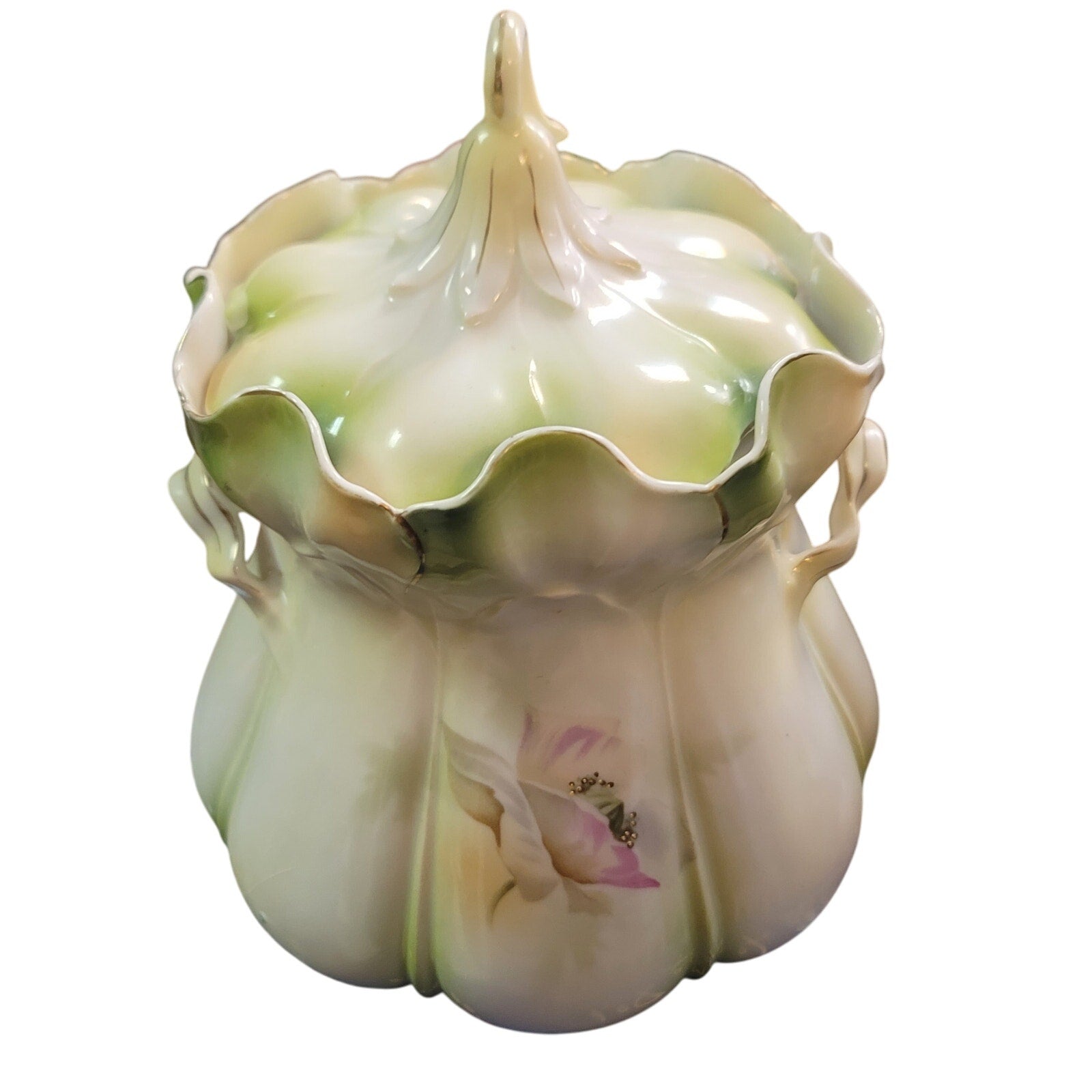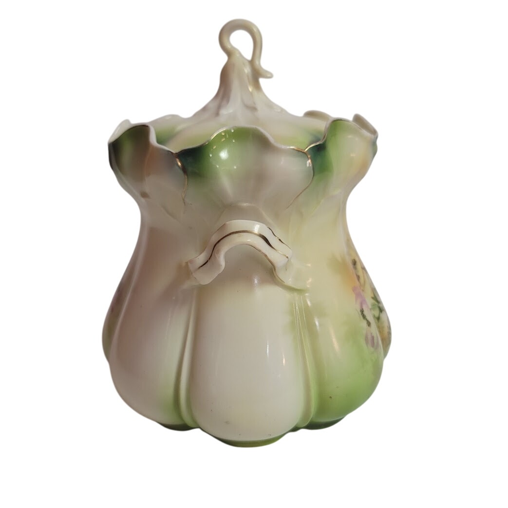 Antique RS Prussia BISCUIT Cracker Jar LAVENDER MORNING GLORY Mold 502 from 1890