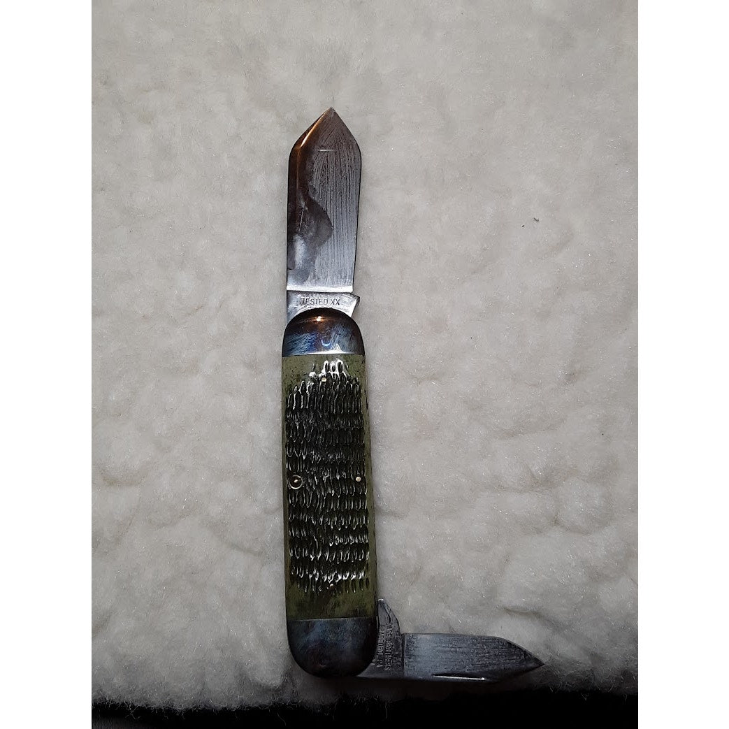 Case Brothers Bradford PA Tested XX 62050 Folding Pocket KNIFE Green Bone Scale Old sticker residue