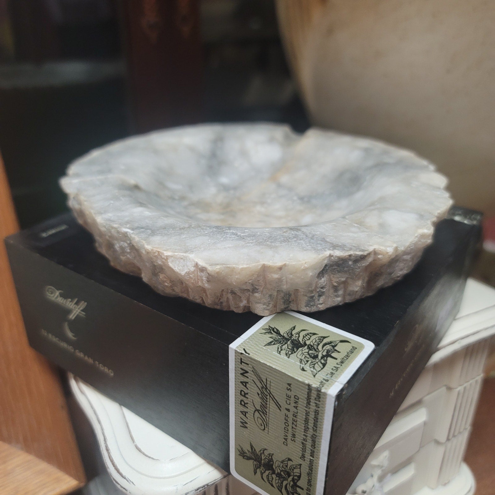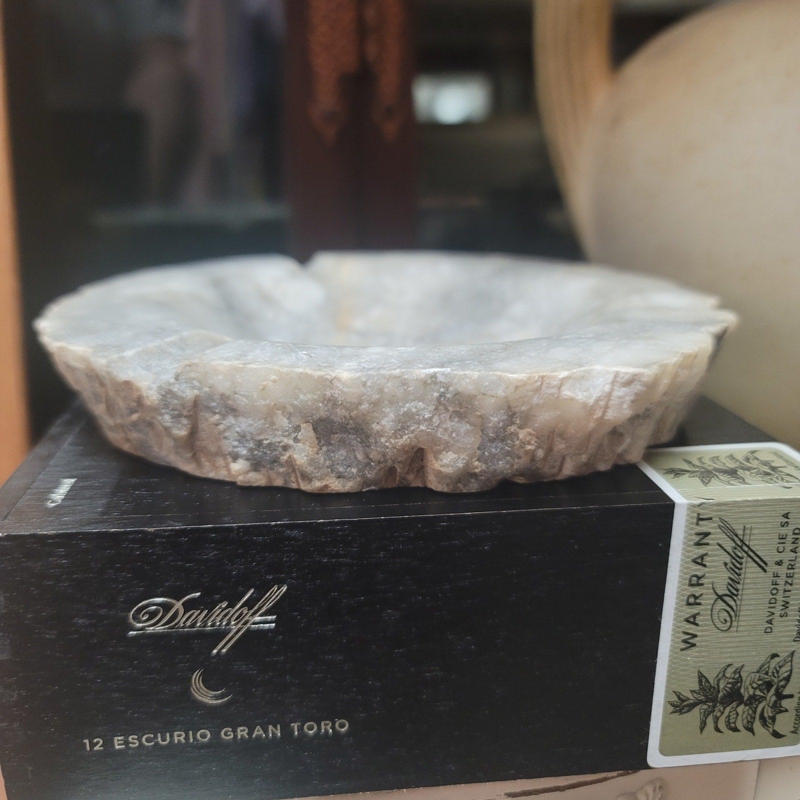 Italy Mid Century ashtray Marble round table office gray white Vintage raw edge