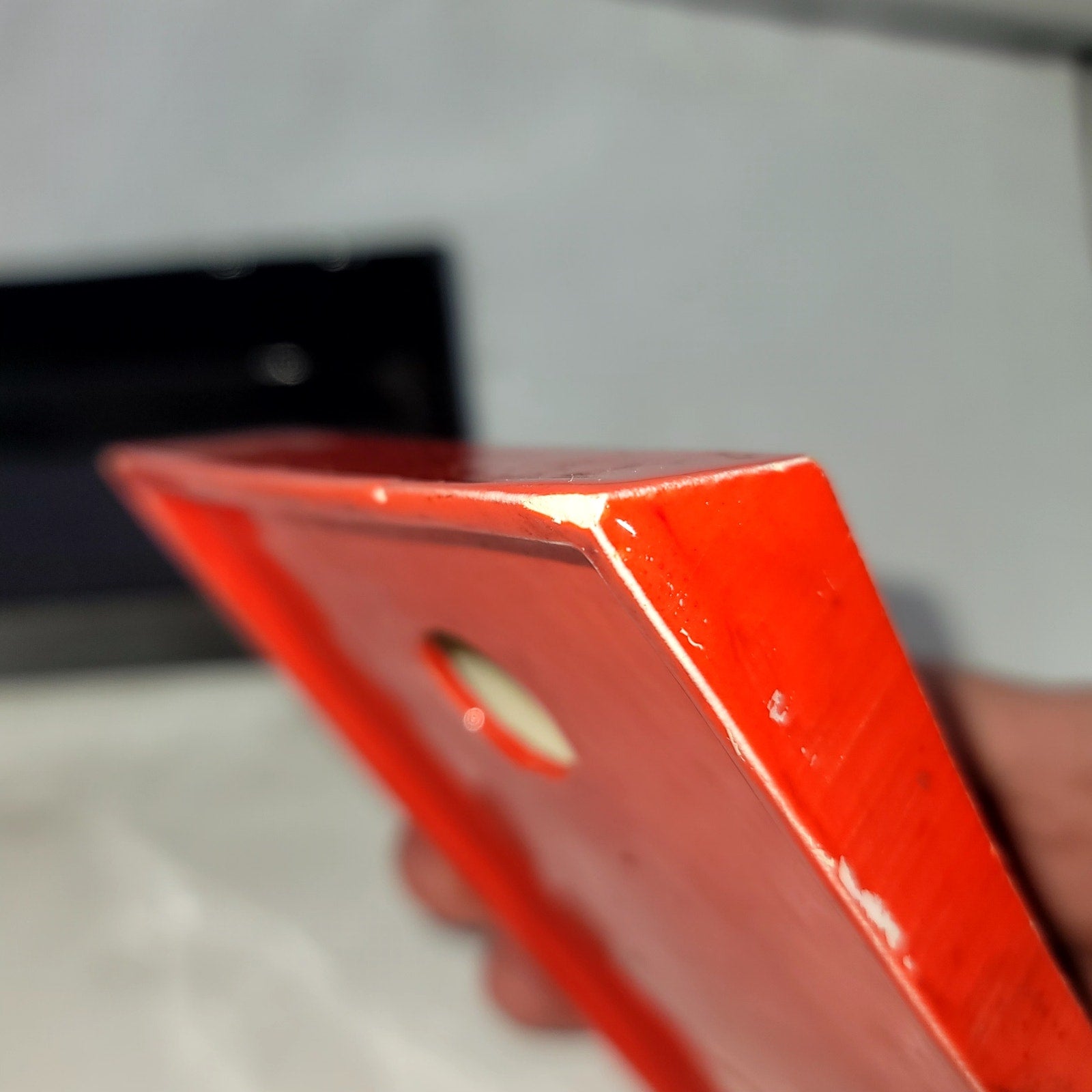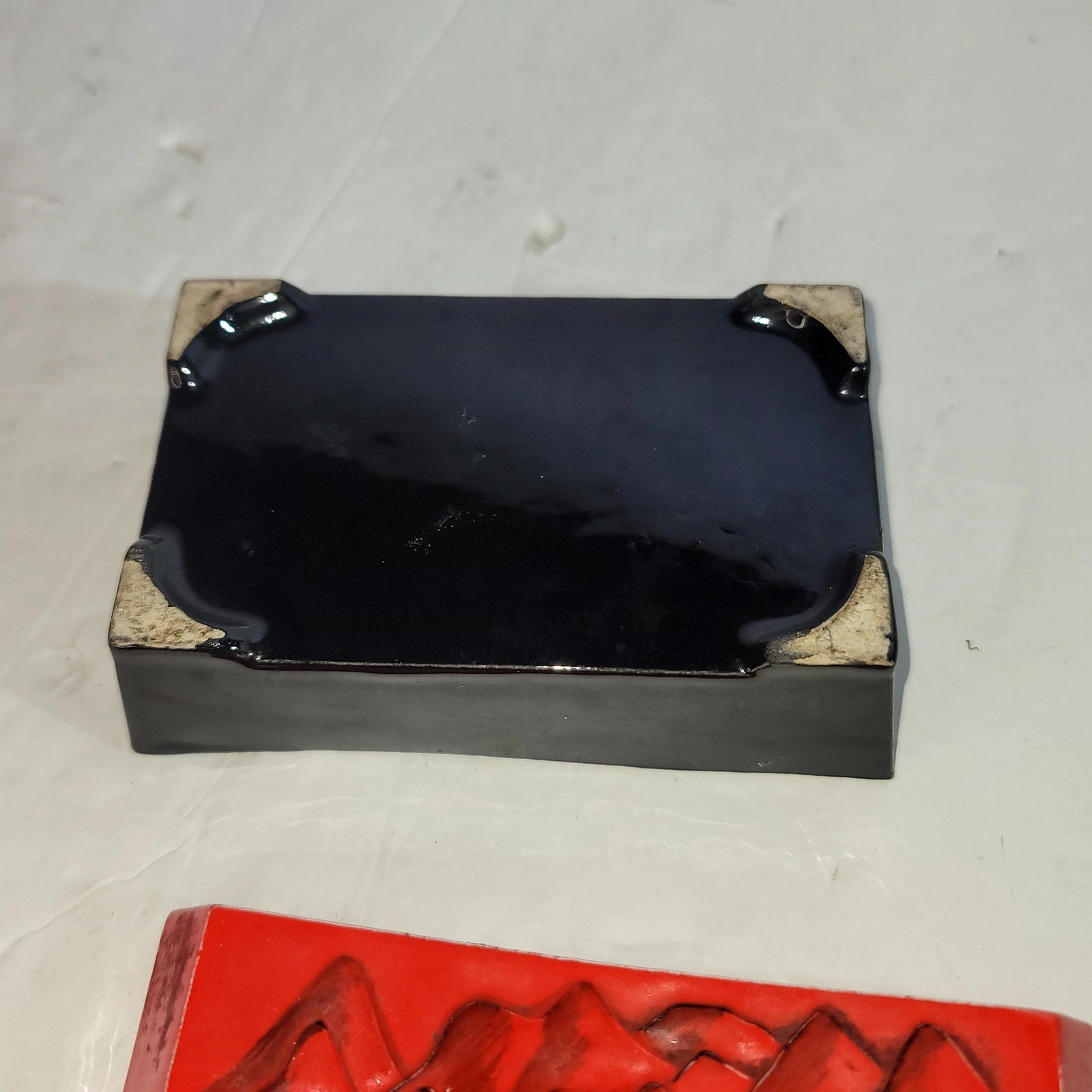 Japanese Inspired Red Black Ceramic Trinket Box Two Piece Landscape 2pc.