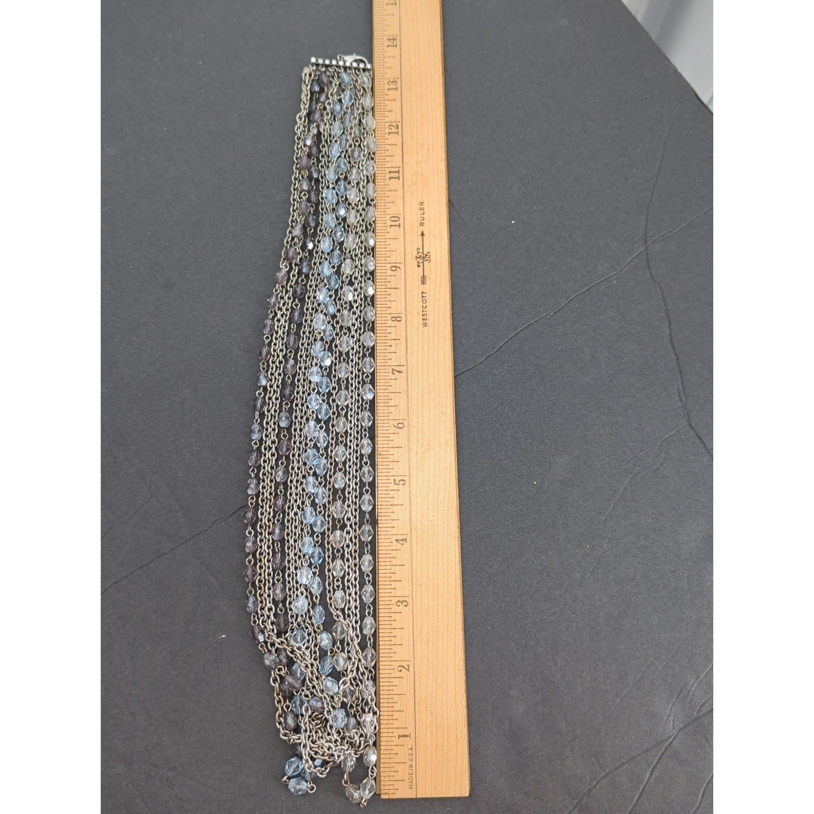 LOFT Silver Multi Strand Necklace Blue Beaded Layered Chain Waterfall Choker 14"