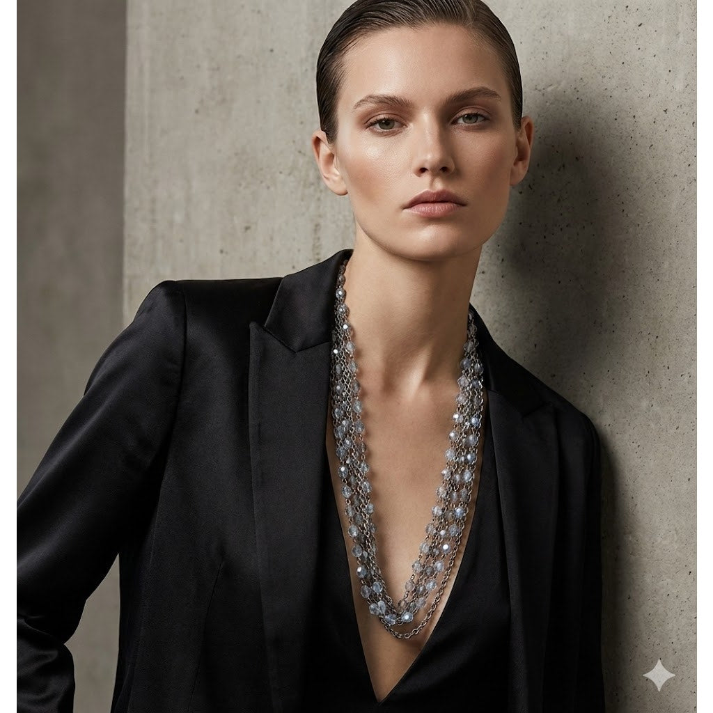 #LoftJewelry #MultiStrandNecklace #MermaidCore #IcyBlue #LayeredChains #BeadedStatement #SilverChoker #FacetedBeads #Whimsigoth #RomanticStyle