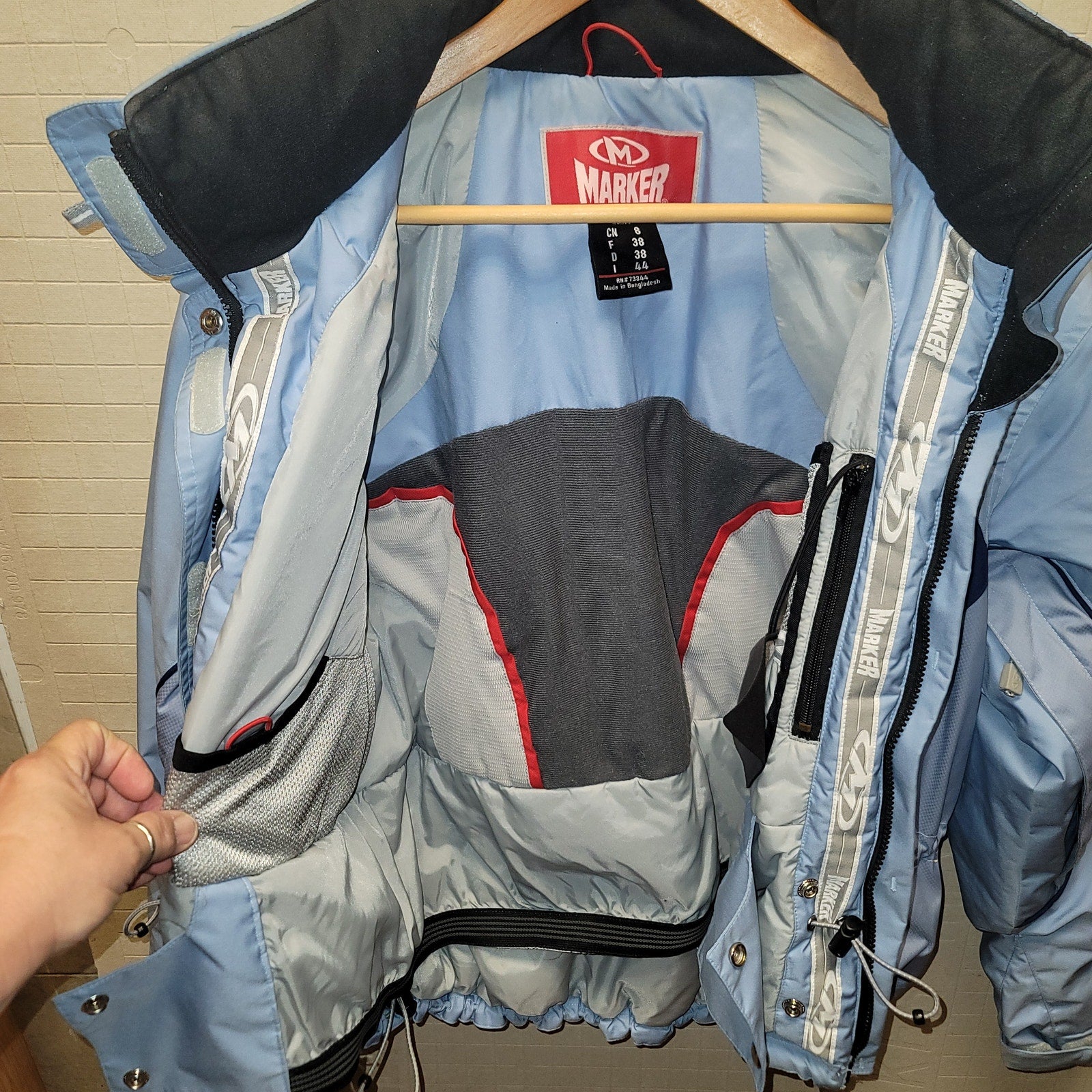 Marker Women's Light Blue Ski Jacket Snow Snowboard Coat Hood High Performance