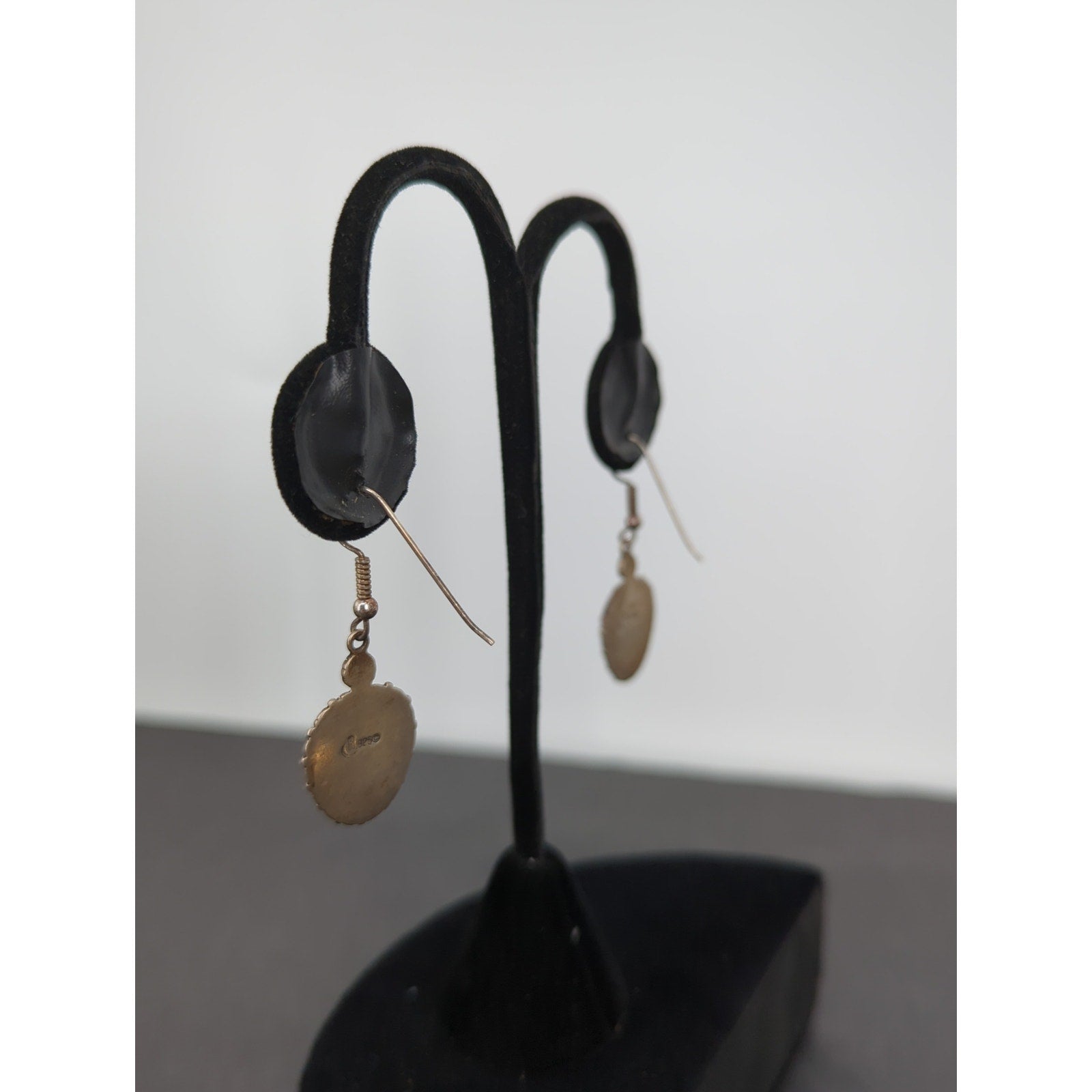 Measuring approximately one inch in drop length, these earrings are hallmarked with the iconic Relios "R and crescent moon" alongside the 925 sterling fineness stamp. This design perfectly balances traditional Southwestern motifs with a clean, Mid-Century Modern silhouette, making them a timeless addition to any jewelry wardrobe. These are in excellent vintage condition with a secure fishhook ear wire.