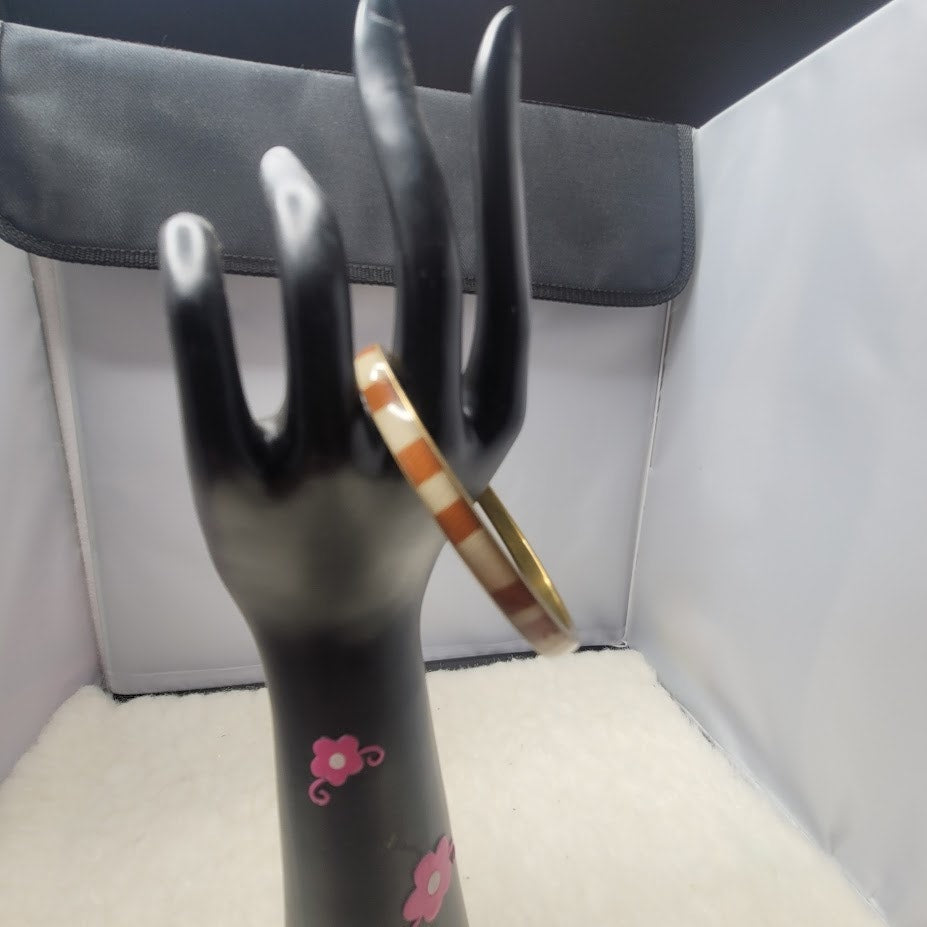 Vintage Brass & Cream Inlay Bangle Bracelet – Mid-Century Modern Minimalist