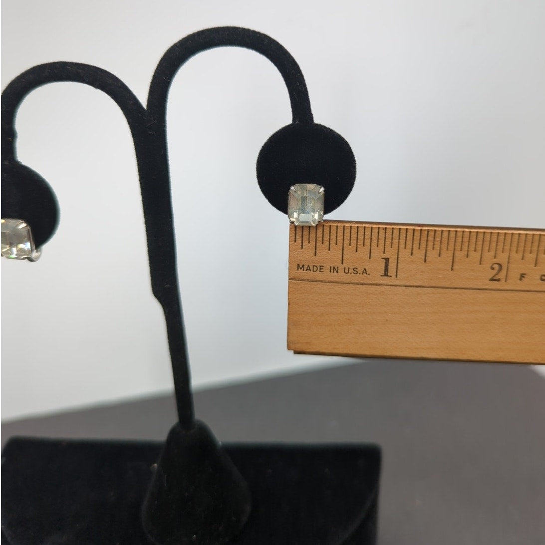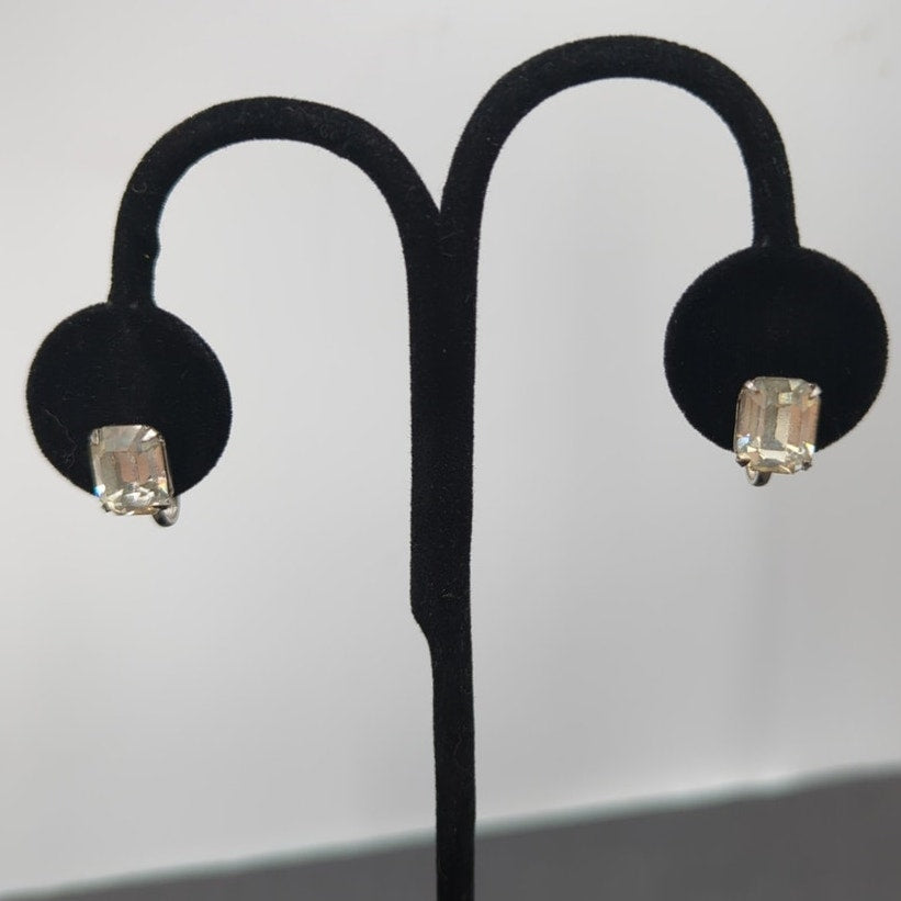 Vintage Emerald Cut Clear Rhinestone Screw Back Earrings
