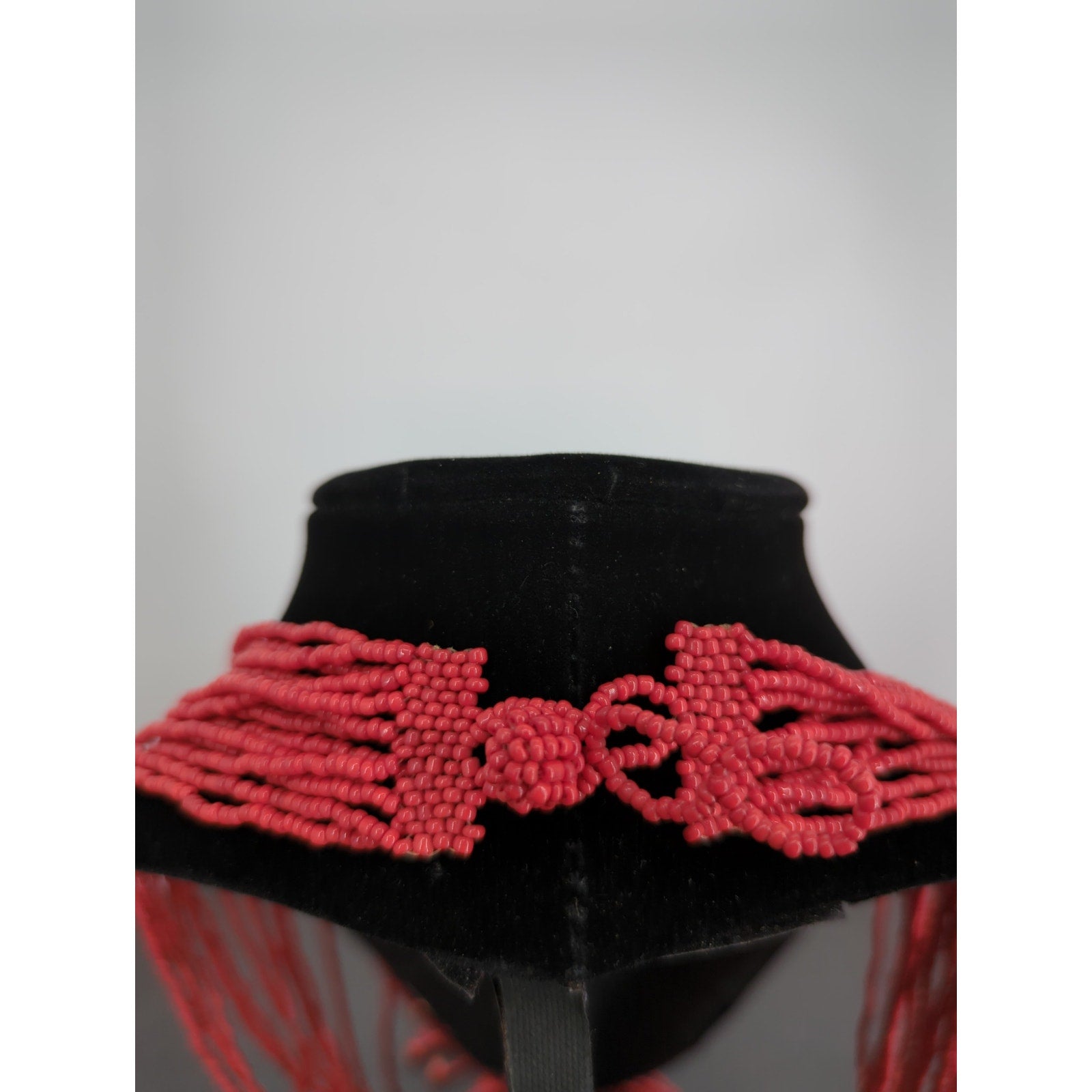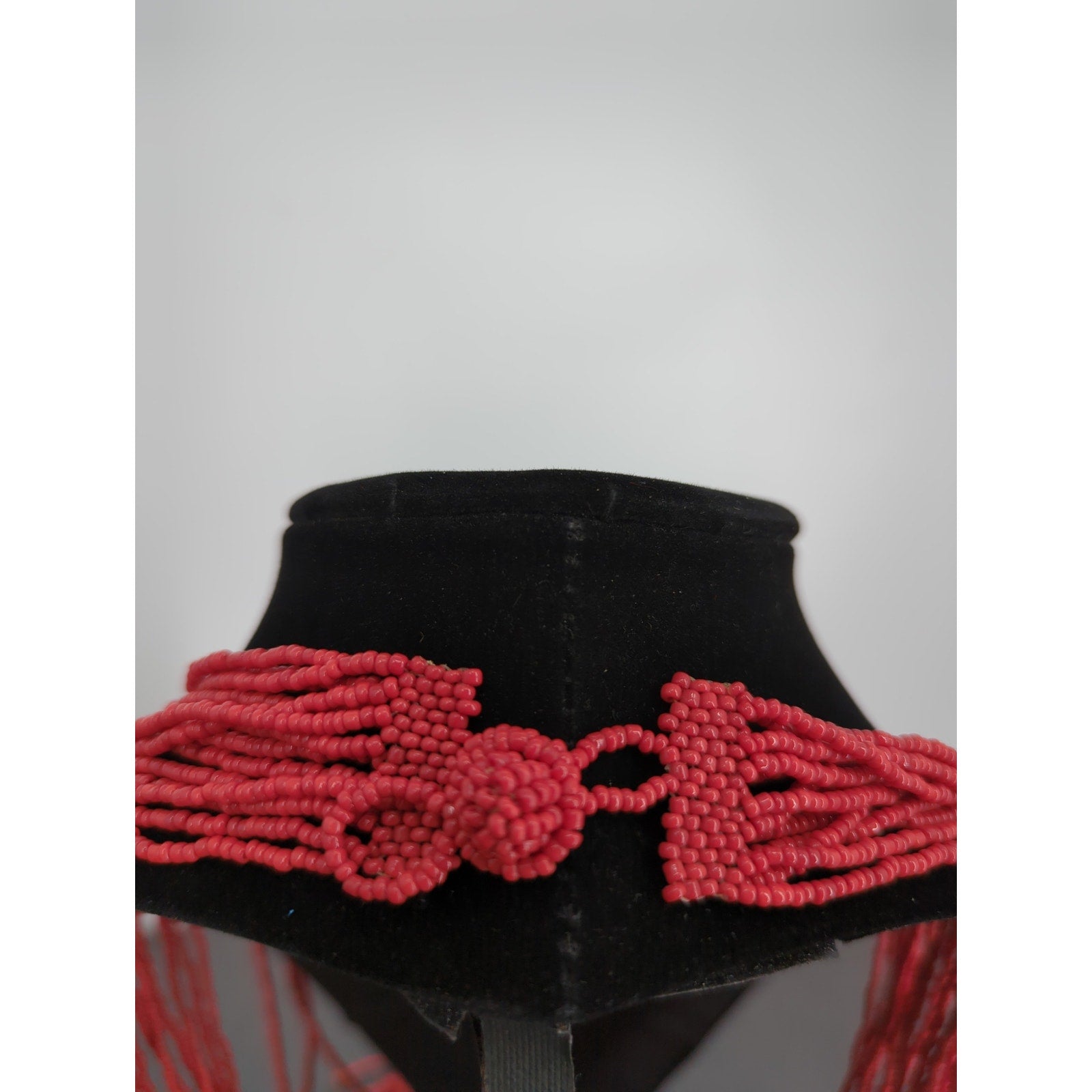 Vintage Red Seed Bead Tassel Necklace Multi Strand Waterfall Boho Statement 18"